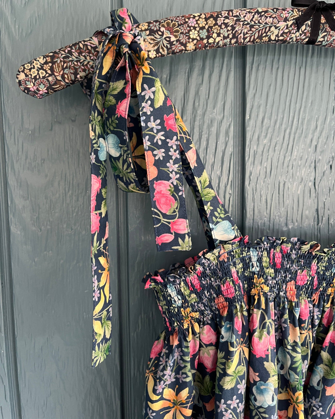 Smukke bøjler i sæt af tre, beklædt med mønstret Liberty-stof. Perfekte til at passe på dine særligt udvalgte garderobefavoritter.