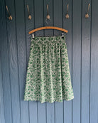 Nederdelen er syet i 100% bomuld fra Liberty London og har en blød, elastisk talje, der giver en behagelig pasform. De praktiske lommer i siden gør den både funktionel og feminin – et tidløst stykke i garderoben.