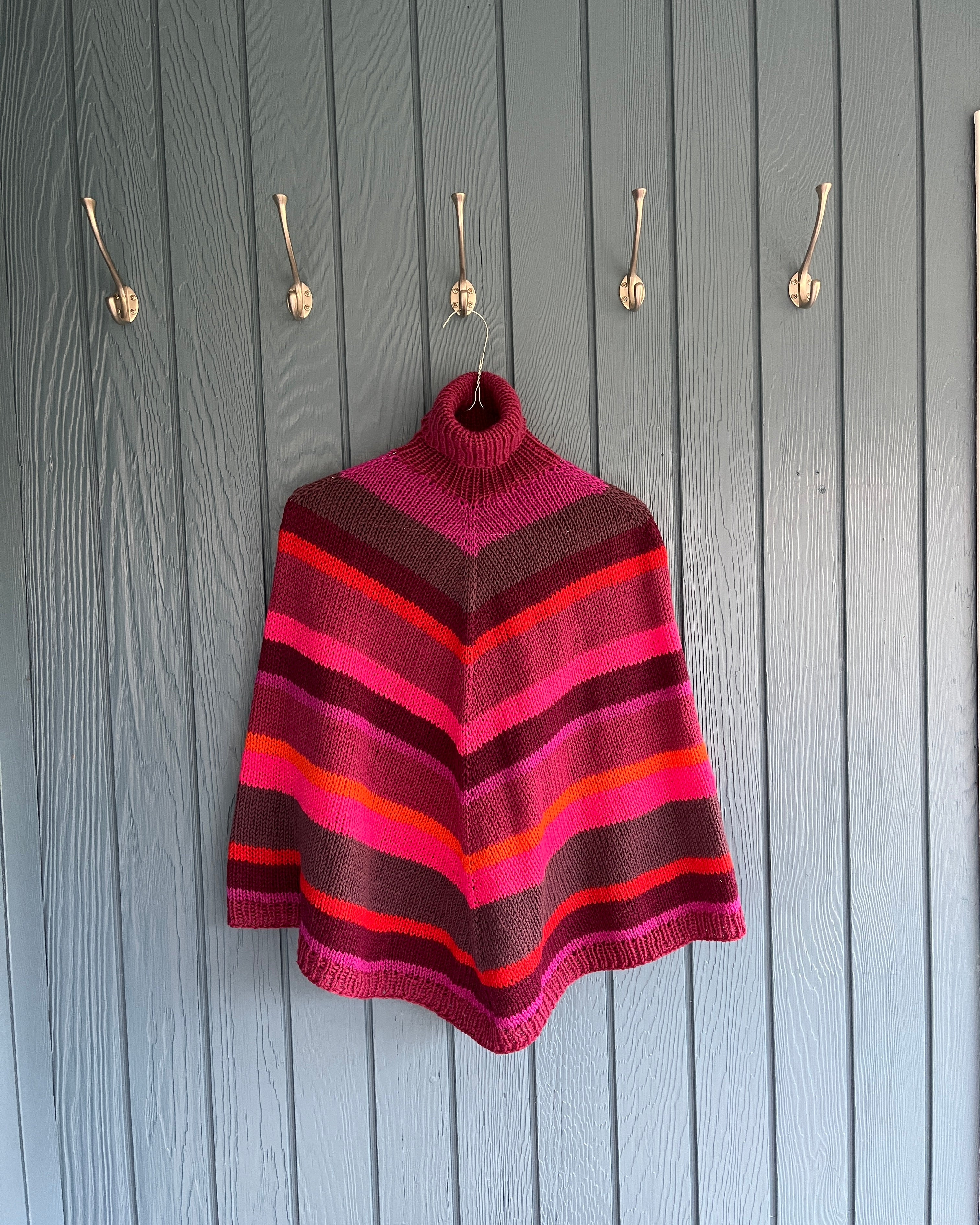 Denne poncho er strikket i blød merinould og fuld af farver, der gør selv grå dage lidt lunere.