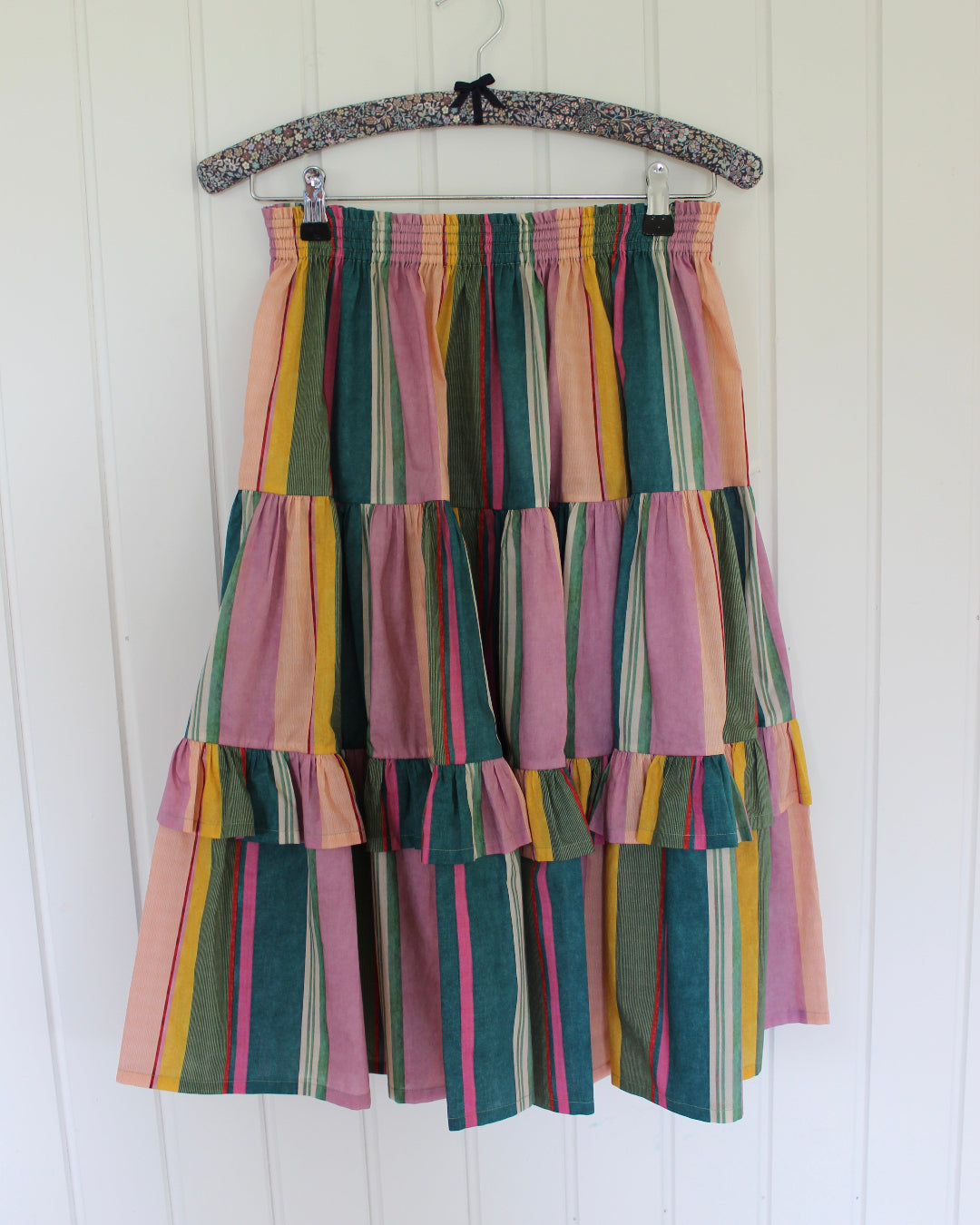 Åse er syet i 100% bomuld fra Liberty London. Den har elastik i taljen og flæser i lag.