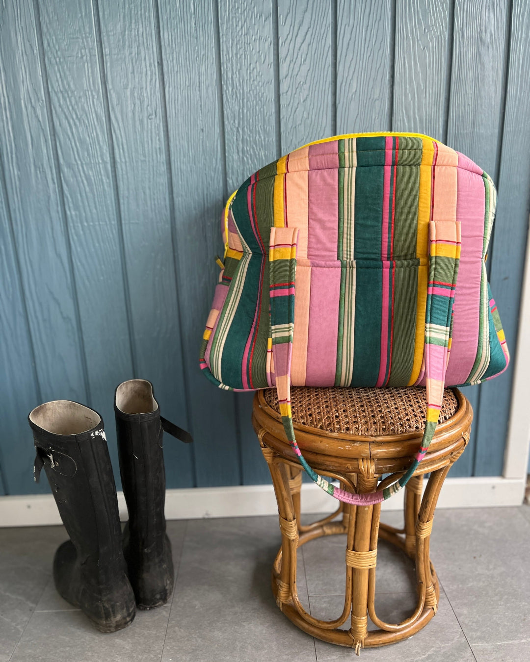 Super lækker weekendtaske syet i Liberty-stof både indvendigt og udvendigt. Tasken har både indvendige og udvendige lommer samt lynlås som lukning. Den er quiltet og har bløde, behagelige skulderremme, som gør den komfortabel at bære. Tasken er utrolig rummelig og kan bruges både som weekendtaske, skoletaske eller til hverdag.
